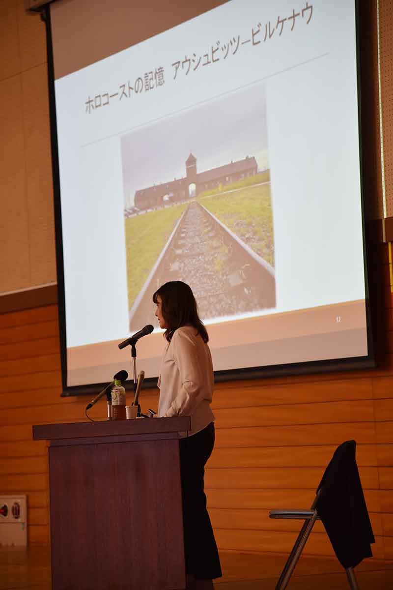 千葉大学教育学部で国際交流事業の一環として杉原まどかが講演しました。「信念を貫く勇気」「人種差別のない世界にすべき」「ホロコーストについて勉強になった」など沢山の感想をいただきました。