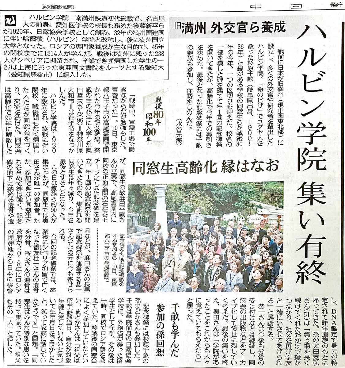 ハルピン学院の記念碑祭に出席(2025.10.10)